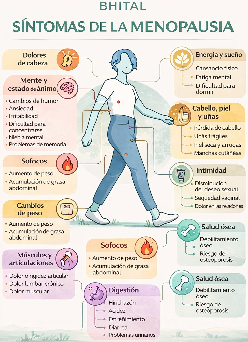 Cuando están bien indicadas, las hormonas bioidénticas pueden ayudar a mejorar no solo síntomas como los sofocos, el insomnio o la sequedad, sino también aspectos profundamente ligados a la salud y a la longevidad femenina. Pueden contribuir a: